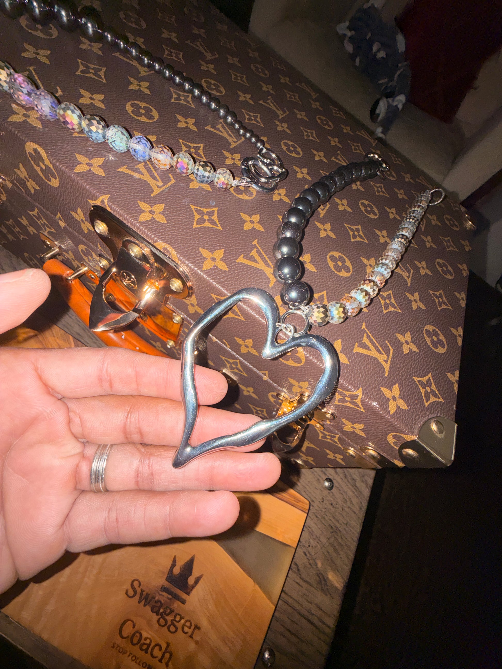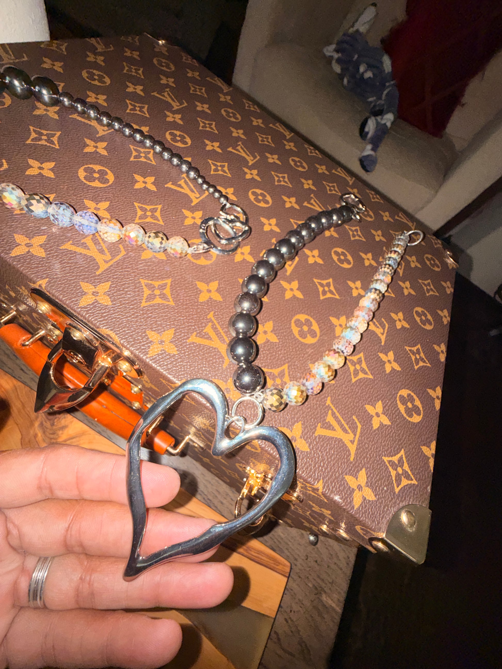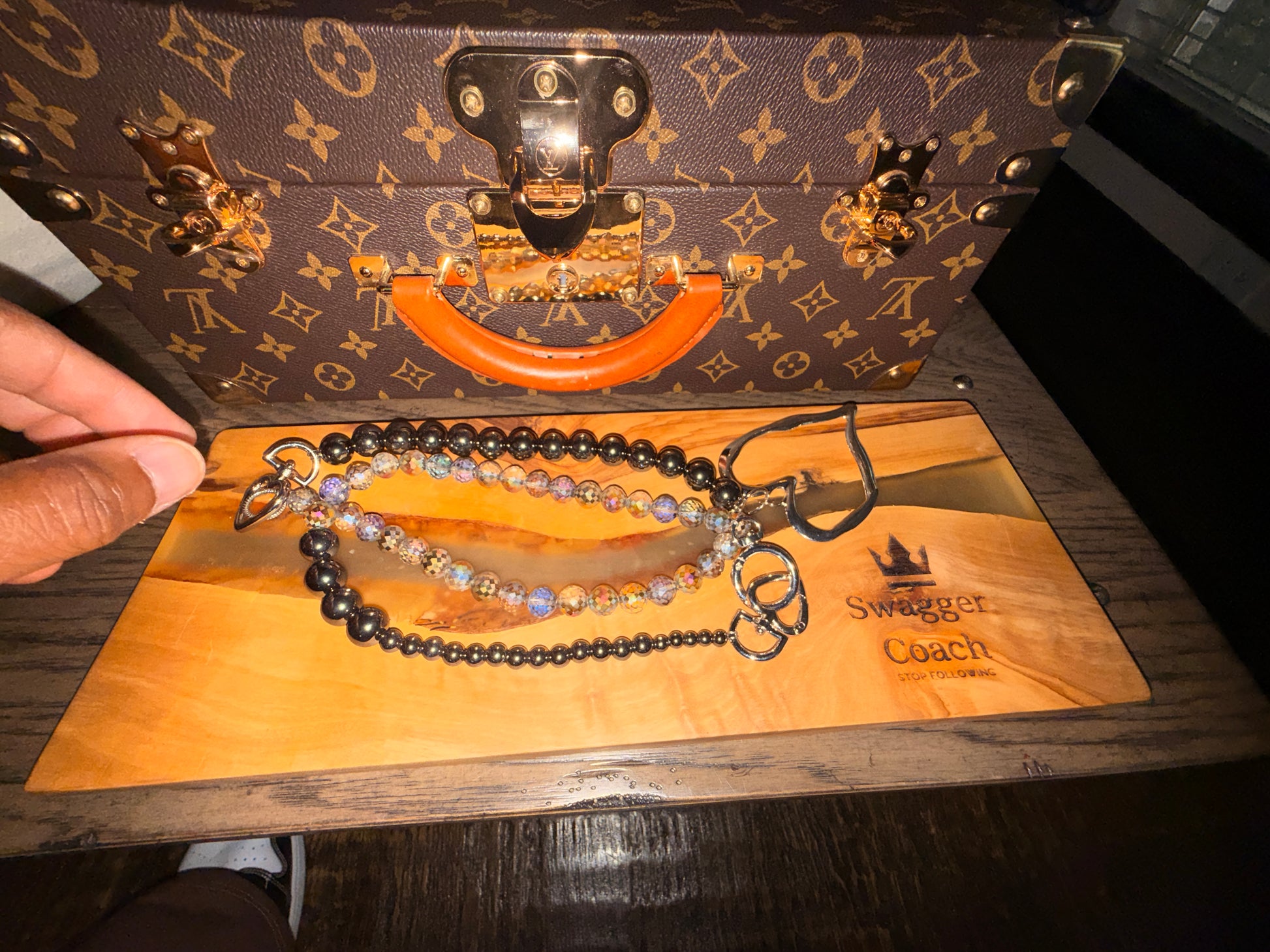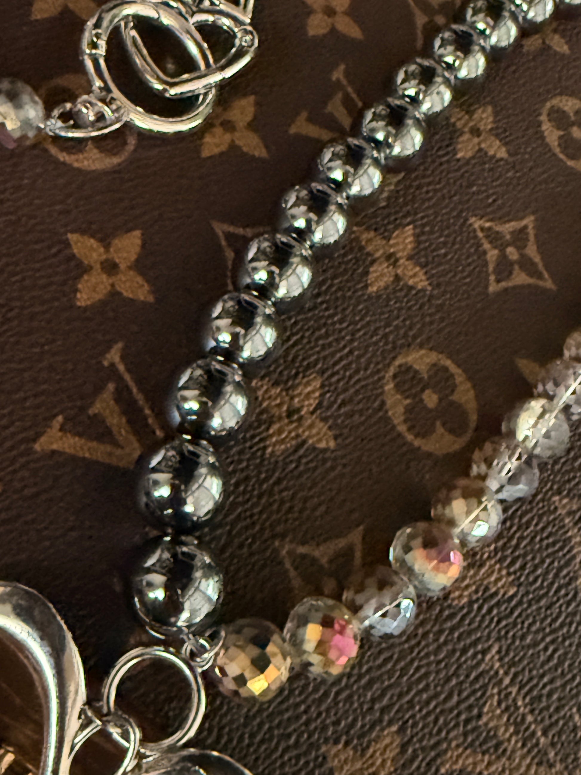 This design boast a larger bead, heavy to touch but comfortable to wear. Exclusive multi colored gem cut glass beads.